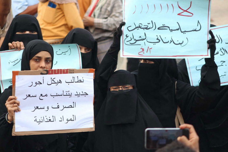 "ثورة النسوان في عدن" تنديدا بتدهور الأوضاع الاقتصادية وانقطاع الكهرباء