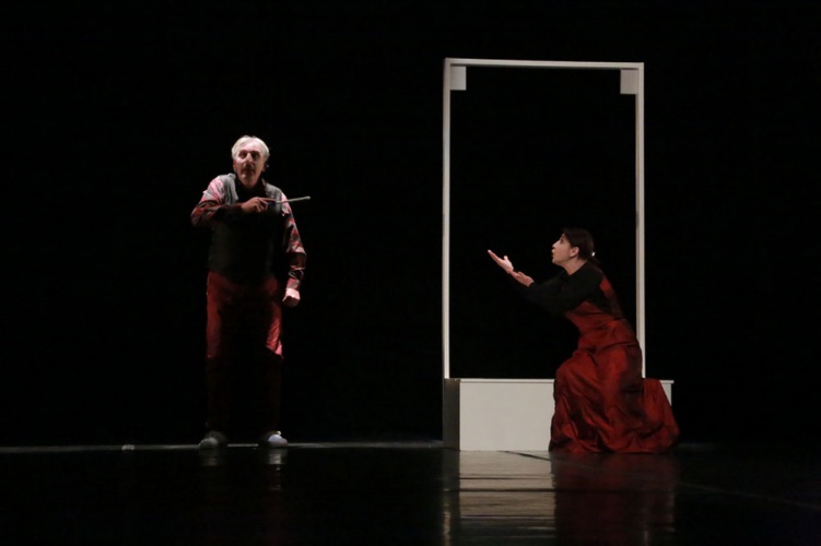 واحتوت خشبة المسرحية على ثلاثة أطر خشبية، حاول كلا الفنانين تفكيكها، خلال الأحداث، كدلالة على حاجتهما للخروج من الأطر التي فرضها المجتمع عليهما، فيما بدا أن الأطر الثلاثة تدل على وجود أكثر من إطاري المرأة والرجل في المجتمع يجب تفكيكها.