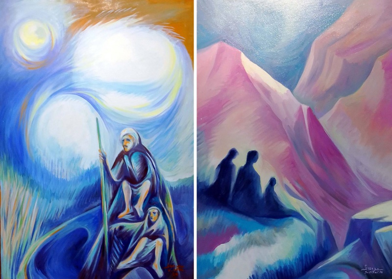 ويرى الناقد الفني أن لوحات الطائي “حملت هذه المرة أيقونات إنسانية بمختلف المستويات العمرية يحدوها الأمل بالعودة إلى الموطن الأصلي، أو فرسان مهاجرون عبر تضاريس البيئة القاسية قمم جبال ووديان موغلة في العمق تقابلها وحشة روح تفتقد كل شيء في تلك الهجرة، فرسان يمتطون خيولهم التي لا تتماثل مع الواقع، لأنها خيول ‘الطائي’ بامتياز، ناتجة عن سلطة التخيل وهي تحمل وصايا الأمل وعطر الأمكنة.”