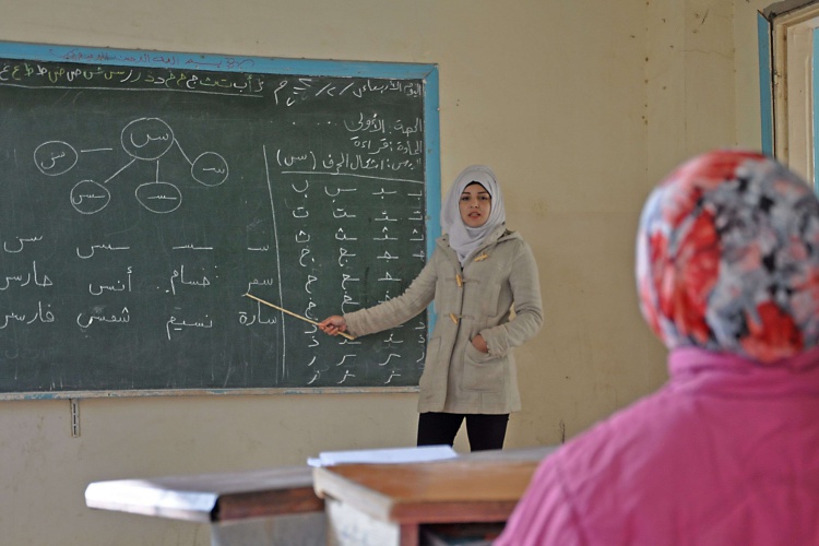 أما اليوم، فيردد التلاميذ خلف معلمتهم أحلام (39 عاماً) الأرقام من واحد إلى عشرة أمام لوح أخضر اللون رسمت عليه فاكهة ونجوم.