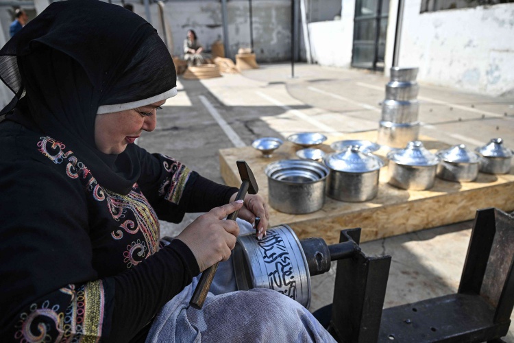 وتقول فاطمة طرطوسي (47 عاما) من طرابلس وهي تحفر عبارة “إن القناعة كنز لا يفنى” على إناء نحاسي، إنها ورثت الحرفة عن والدها، وعندما بلغت التاسعة تركت المدرسة وتفرغت لها، مضيفة “عندما أنتهي من الحفر أشعر بسعادة أنني استطعت أن أنجز شيئا جميلا”.