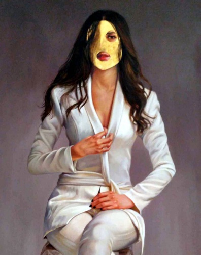وتعكس لوحة “قناع الذهب” التوقعات المجتمعية التي تفرض على المرأة الظهور بشكل مثالي مما يجعلها عالقة في دور محدد لا يعكس صورتها الحقيقية، حيث تنتقل بين الهوية التي تظهرها للآخرين وتلك التي تعيشها في داخلها وهي من التحديات التي تواجهها المرأة في المجتمع.
