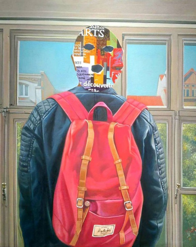 ويظهر التحدي للأوضاع المألوفة التي يمر بها بعض الأشخاص في لوحة “منظر مختلف”، حيث لا يرون الأشياء كما هي عليه عادة للحصول على التمرد أو الرغبة في التفرد، والقناع المقلوب فكرة تمويه أو تشويش على الهوية، وعادة ما يكون القناع وسيلة للتستر على الذات ولكن وضعه العكسي يعني حالة من الارتباك أو الصراع الداخلي بشأن تقويم الذات.