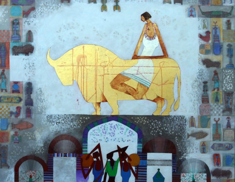 "طقوس على حافة الوجود".. لوحات تعيد تشكيل الحواديت