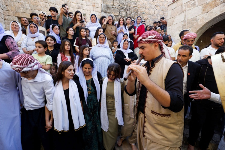 نينوى (العراق)- احتفل أبناء الديانة الإيزيدية في قضاء الشيخان بمحافظة نينوى بعيد “جما”، المعروف أيضا بـ”العيد الجماعي”، في معبد لالش، حيث أقيمت الطقوس الدينية التي تستمر ستة أيام، وسط أجواء من التآخي والمشاركة من مختلف الطوائف والديانات العراقية.