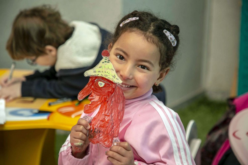 ففي زاوية من مدينة الثقافة، تجمع عشرة أطفال في هذه الورشة وجلسوا على طاولات صغيرة وكراس ملونة، وهم يمسكون الأقلام لرسم خيال العروسة، مستعملين الألوان لتزيينها ثم اتخذوا المقص لقص زواياها ليخلقوا أشكال دمى جميلة بأنامل بريئة.