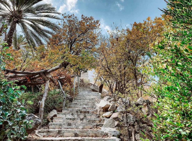 وعلى جانبي الدرج، توجد عدة استراحات يستعد فيها الزائر لخوض مغامرة جميلة وفريدة، تتطلب لياقة بدنية متوسطة، حيث توجد إشارات بالألوان تدل على المسار.
