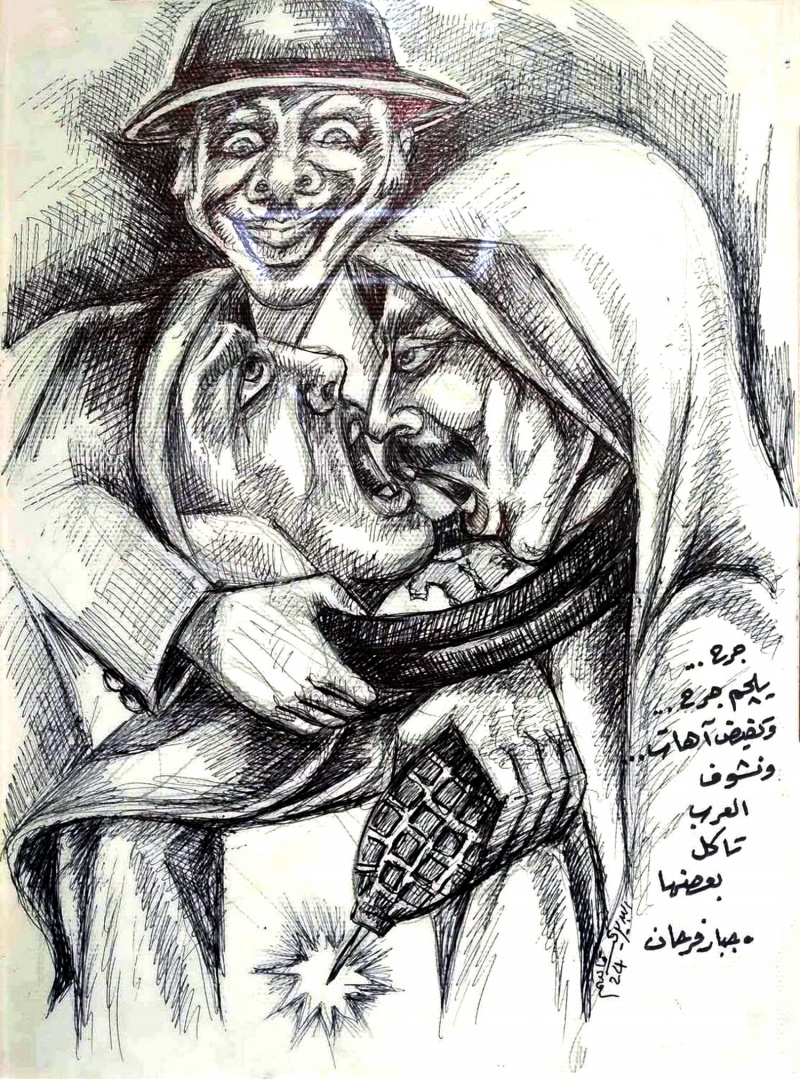 المعرض ضم ستين لوحة تخطيط بالقلم الجاف، بالأسود والأبيض، استلهم فيها الفنان ومضات من قصائد أربعة من الشعراء الشعبيين، وهم كل من ناظم السماوي وجبار فرحان ورياض الركابي وأدهم عادل.